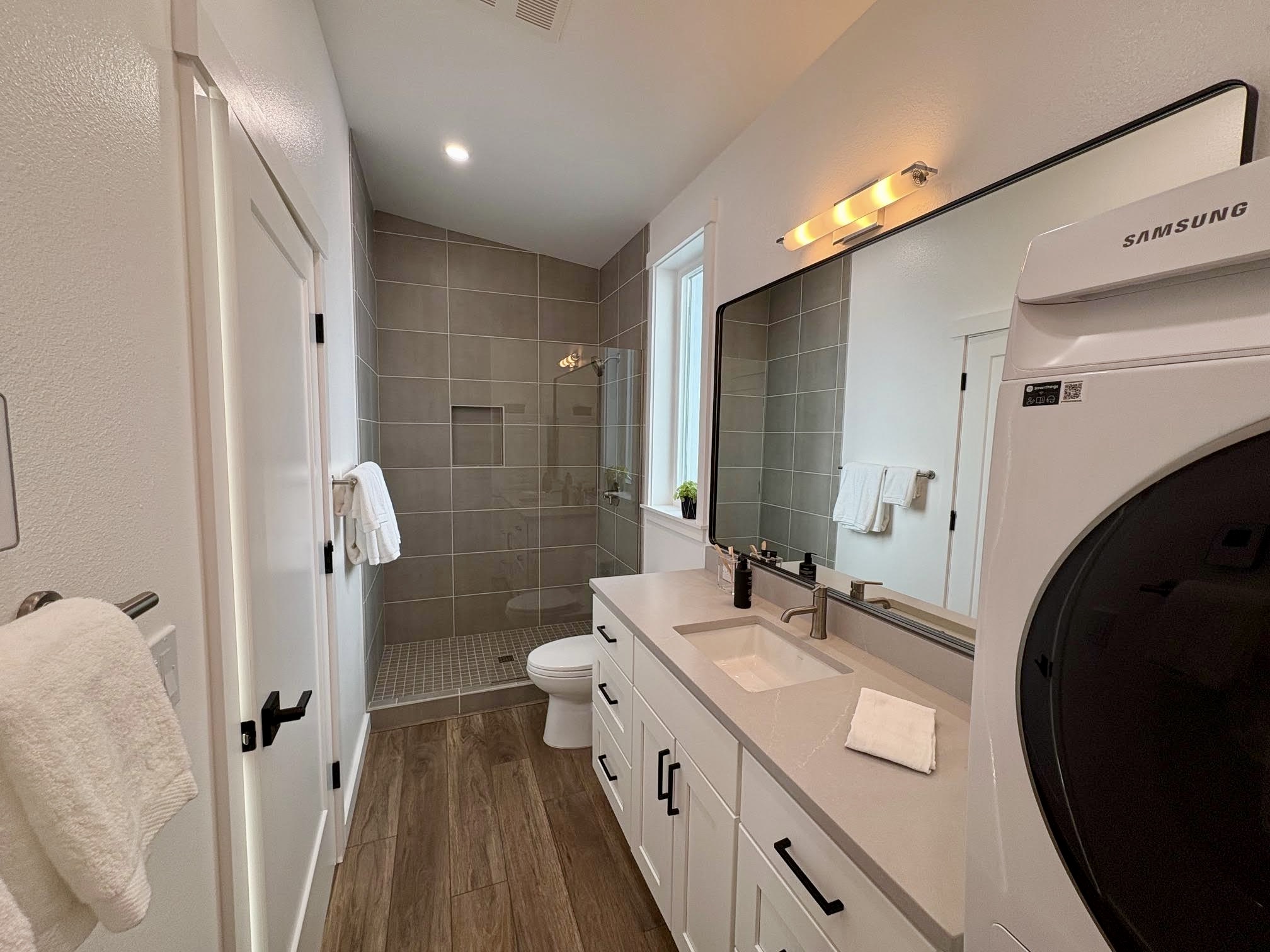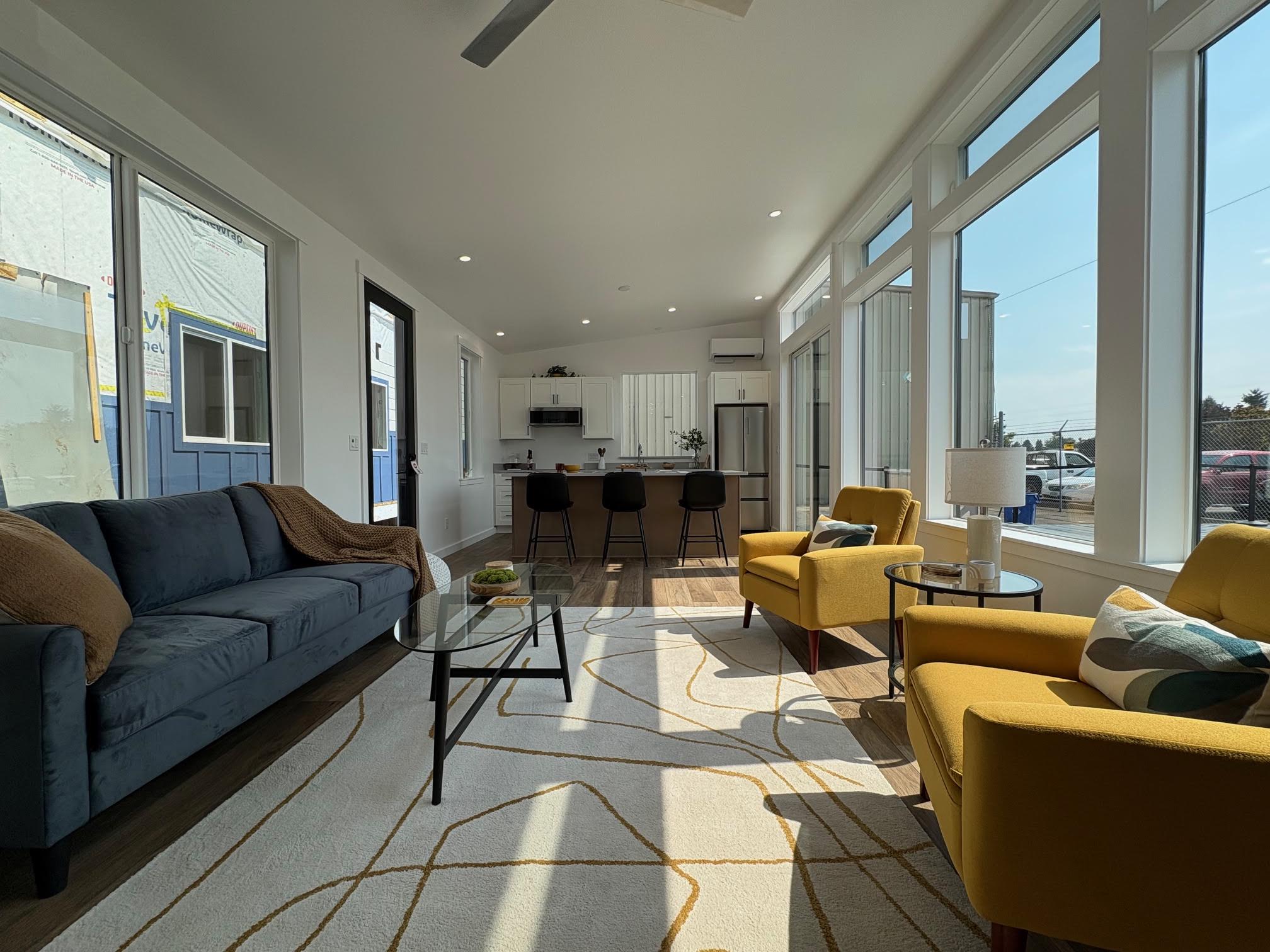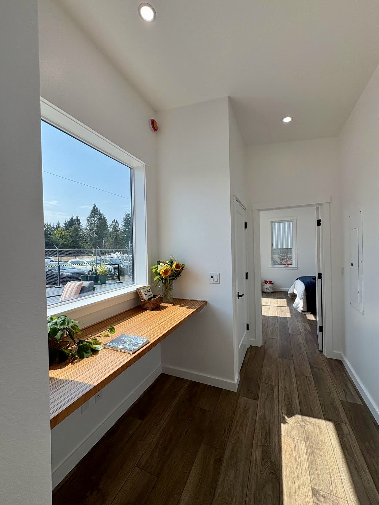 Like the Northwest series, a 4’ wide hallway leads you from the living space to the bedroom, and creates a work space for laundry (or an office space) positioned in front of a 5’ x 5’ square window, it’s awesome!
